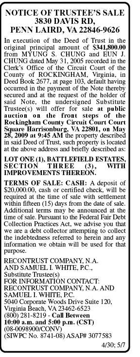 This Trustee Sale is scheduled for May 28, 2009 at 9:45 a.m.
