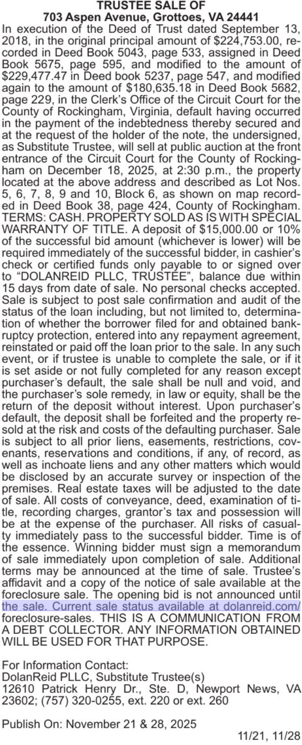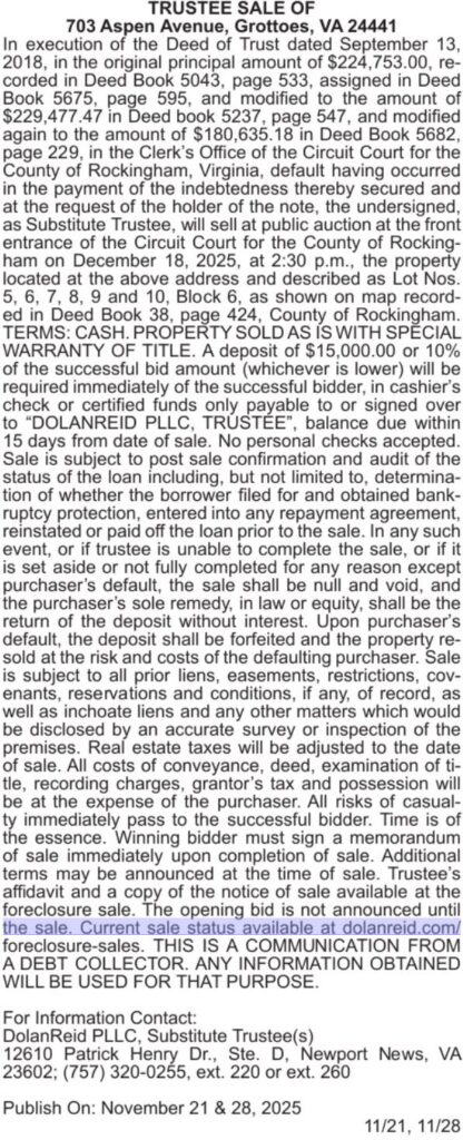 [2025-12-18] 703 Aspen Avenue, Grottoes, VA