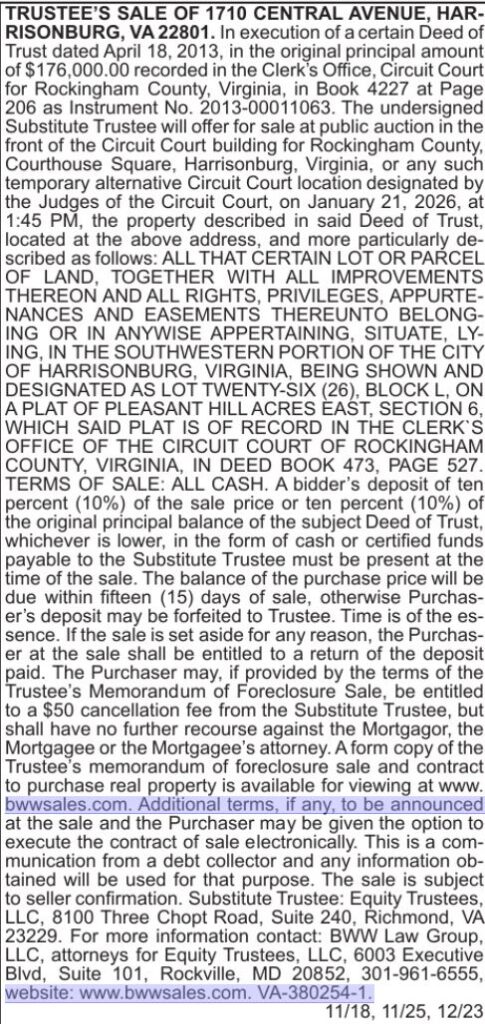[2026-01-21] 1710 Central Avenue, Harrisonburg, VA