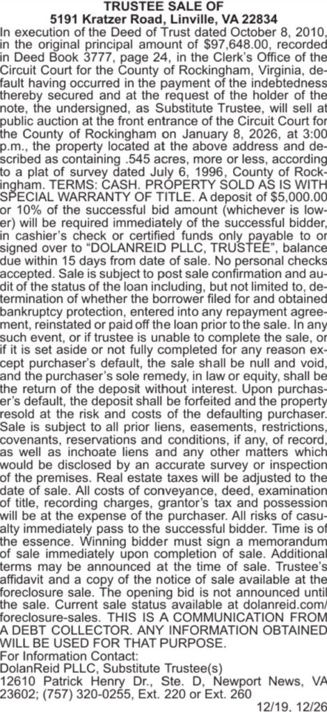 [2026-01-08] 5191 Kratzer Road, Linville, VA