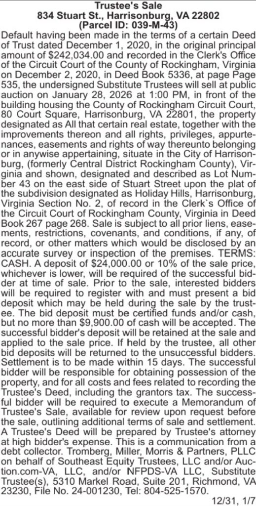 [2026-01-28] 834 Stuart Street, Harrisonburg, VA