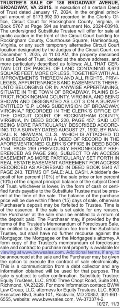 [2025-12-01] 186 Broadway Avenue, Broadway, VA