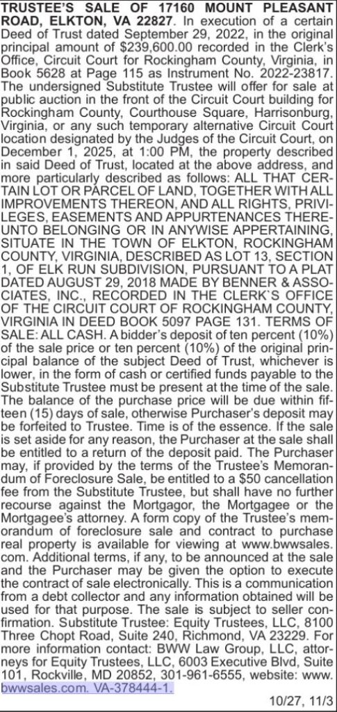 [2025-11-20] 16648 E Summit Avenue, Elkton, VA