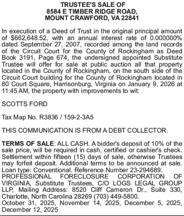 [2026-01-09] 8584 E Timber Ridge Road, Mount Crawford, VA